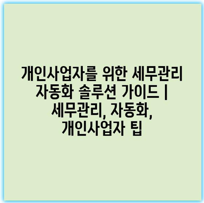 개인사업자를 위한 세무관리 자동화 솔루션 가이드 | 세무관리, 자동화, 개인사업자 팁 에 대해 자주 묻는 질문 TOP 5
