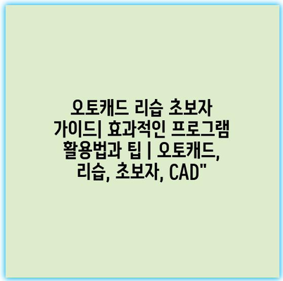 오토캐드 리습 초보자 가이드| 효과적인 프로그램 활용법과 팁 | 오토캐드, 리습, 초보자, CAD”