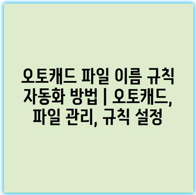 오토캐드 파일 이름 규칙 자동화 방법 | 오토캐드, 파일 관리, 규칙 설정
