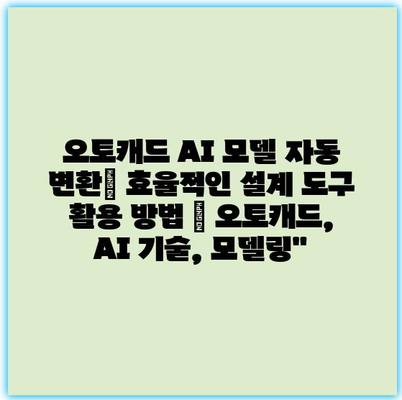 오토캐드 AI 모델 자동 변환| 효율적인 설계 도구 활용 방법 | 오토캐드, AI 기술, 모델링”