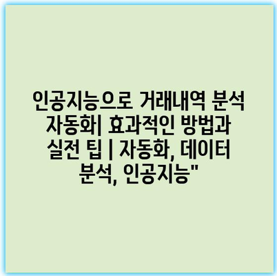 인공지능으로 거래내역 분석 자동화| 효과적인 방법과 실전 팁 | 자동화, 데이터 분석, 인공지능