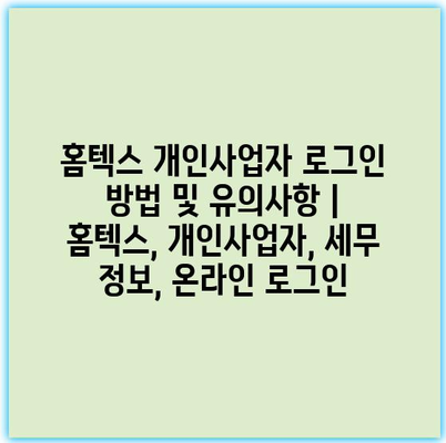 홈텍스 개인사업자 로그인 방법 및 유의사항 | 홈텍스, 개인사업자, 세무 정보, 온라인 로그인에 대해 자주 묻는 질문 TOP 5