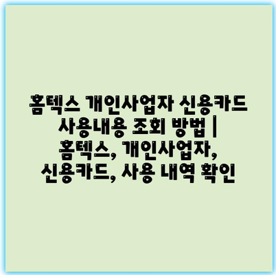 홈텍스 개인사업자 신용카드 사용내용 조회 방법 | 홈텍스, 개인사업자, 신용카드, 사용 내역 확인 에 대해 자주 묻는 질문 TOP 5